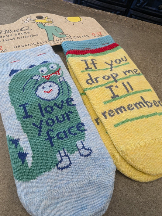 Blue Q Baby Socks- Your Face/Drop Me