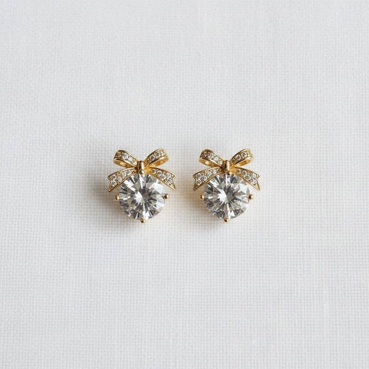 Charlotte-Vintage InspiredCubic Zirconia Bow Stud Earrings
