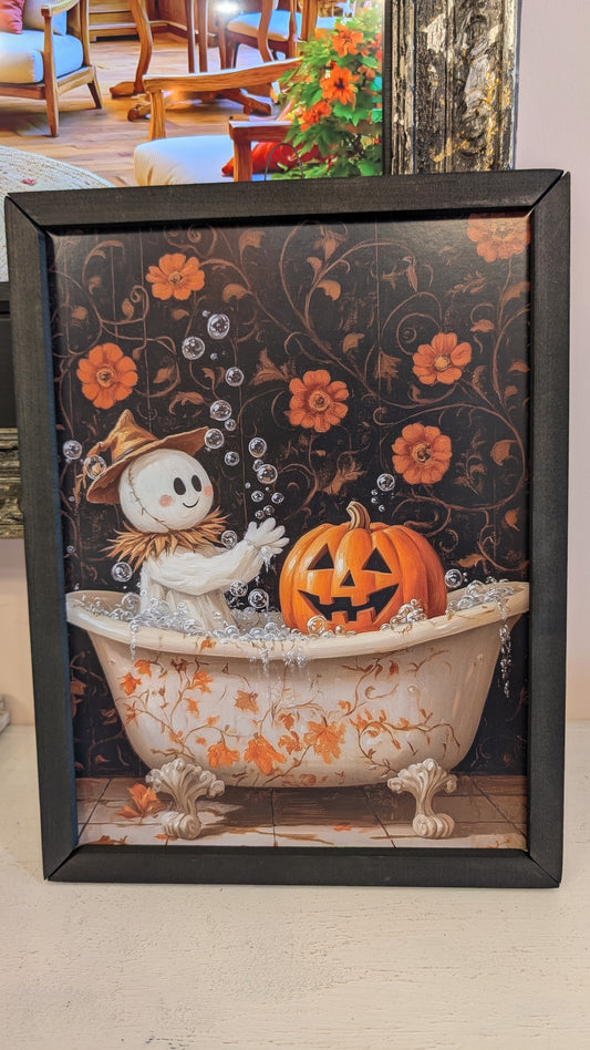 Autumn Pumpkin Scarecrow Tub 12x16 Box Framed Art