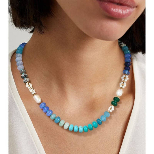 Agate Candy Bead w/ Flowers Necklace- Blues