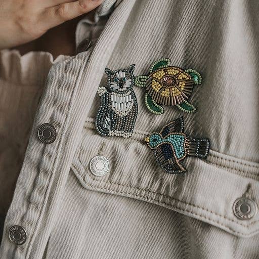 Bala Mani Beaded Bird Brooch Pin - Handmade, Fair Trade