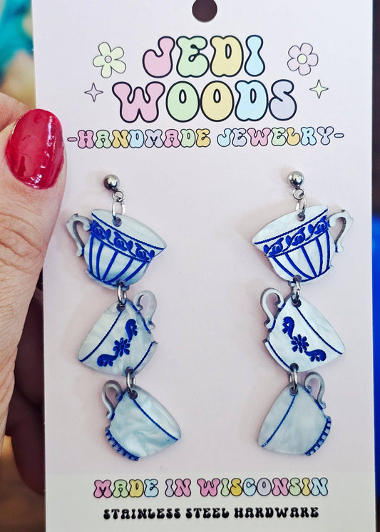 Cottagecore Vintage China Teacup Dangle Earrings