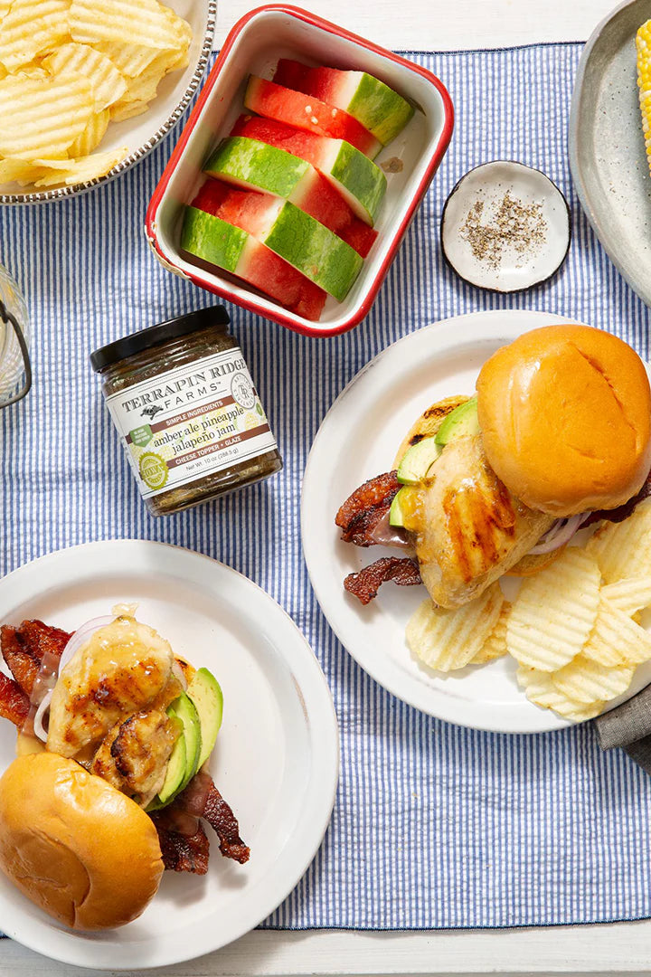 Iowa state fair winner! Amber ale combined with fruity pineapple and the right amount of heat from spicy jalapeños create a rich, full bodied and flavorful jam. This beer jam makes a delicious glaze for pork, poultry and fish. Fold into mashed sweet potatoes and serve with grilled salmon for a real treat. Yummy on a grilled chicken sandwich.