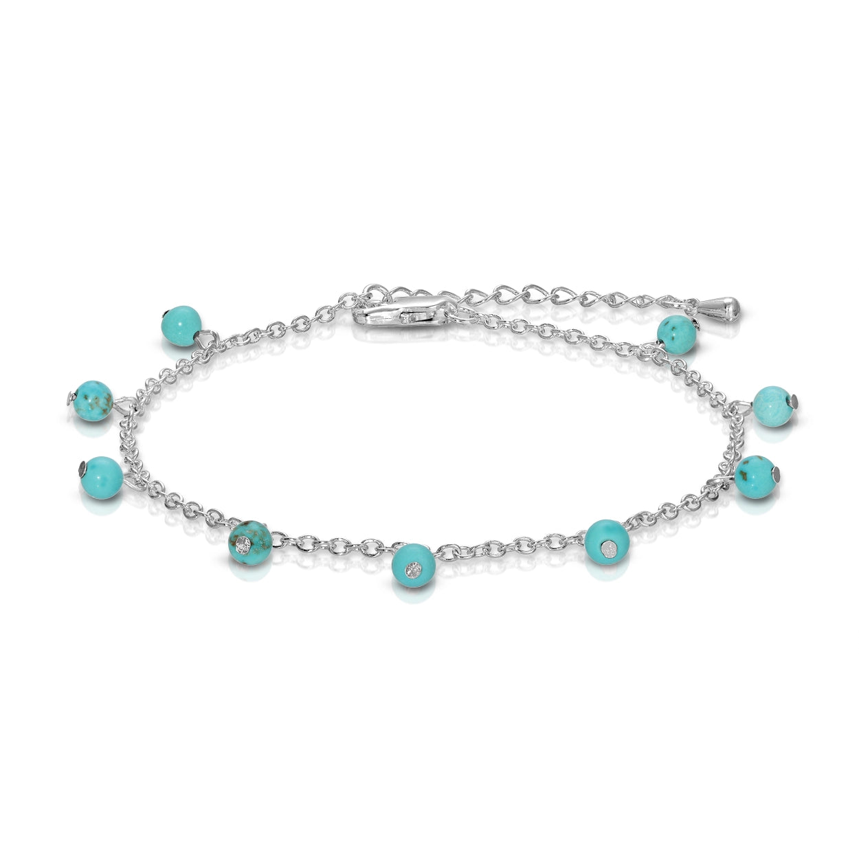 Add a splash of sparkle to your jewelry lineup with our pretty dangle stone bracelets!A silver plated chain with round turquoise howlite dangles,these anklets radiate casual fun and flirty charm. Perfect for capturing the carefree spirit of summer and breezy coastal escapes, they’re the ultimate accessory for sun-chasers and style-lovers.