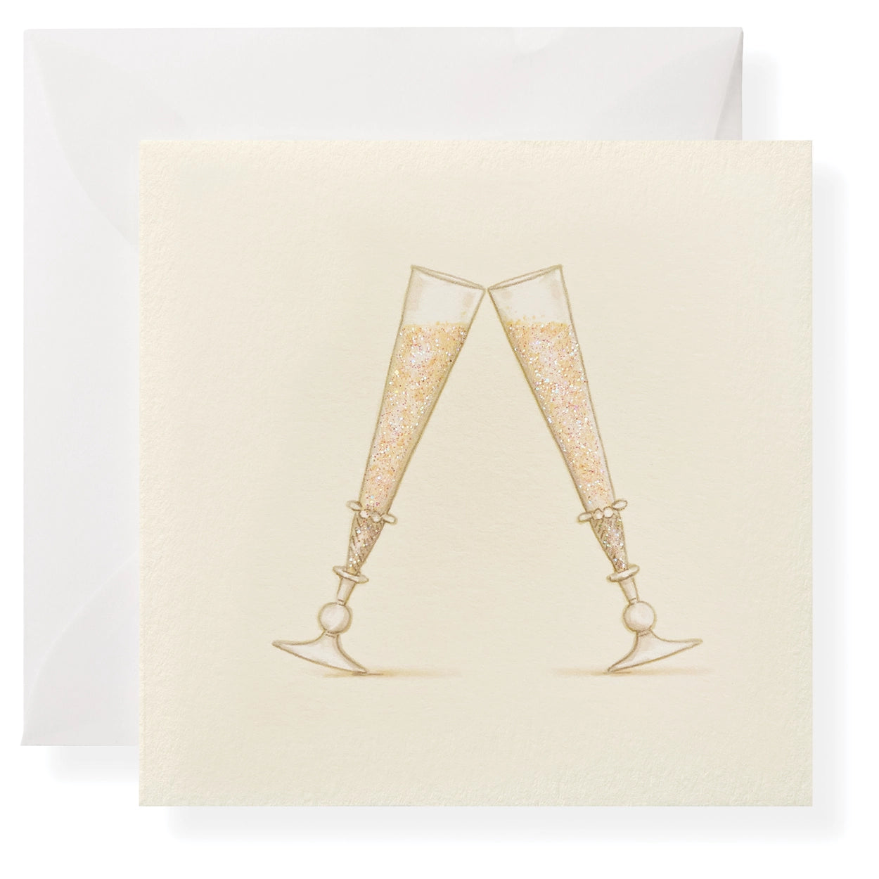 Our Champs gift enclosure is printed and hand-glittered in Memphis, tn. Hand crafted artwork, full color ink printed on natural white paper, hand-glittered, and paired with a vellum envelope. Book-folded enclosure card, blank on the inside.