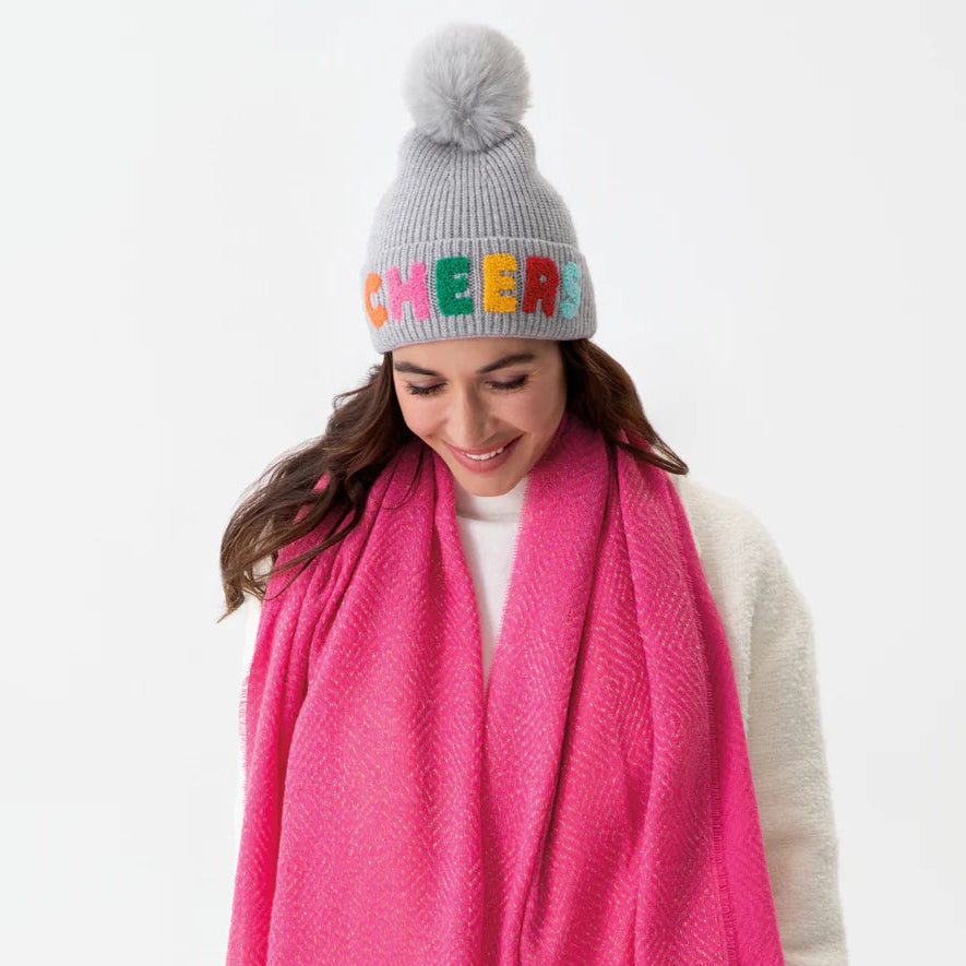 Don't let the cold get you down this holiday season! The Cheers Beanie by Shiraleah combines style and festivity in one cozy hat. With a chic grey color and vibrant "Cheers" embroidery, this soft and warm winter accessory is sure to spread some cheer.