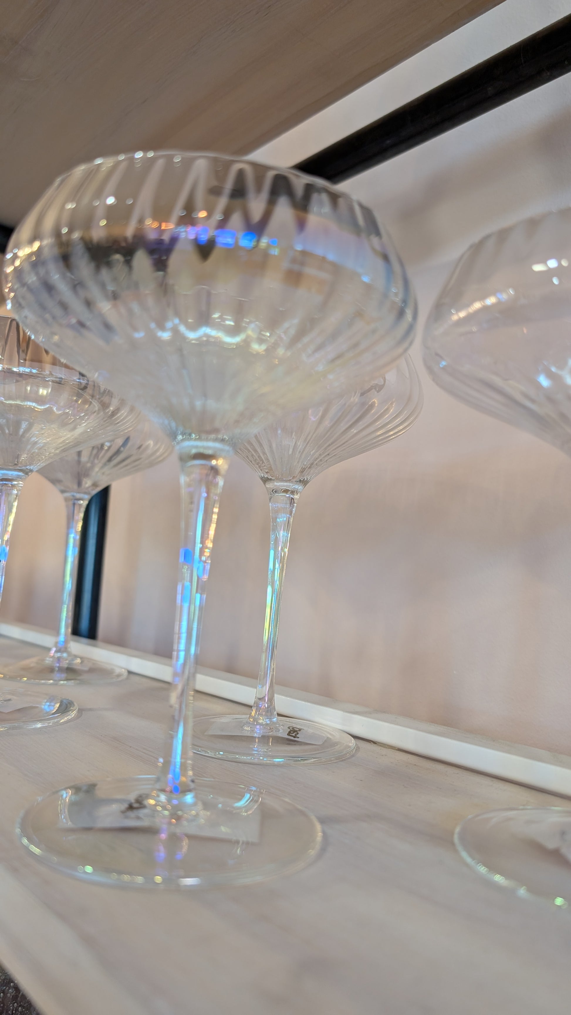 Add a touch of warmth and sophistication to your next gathering with our new smoke iridescent coupe glasses. these glasses are perfect for serving champagne, sparkling wine, or cocktails. the elegant coupe design and iridescent finish are sure to impress your guests.