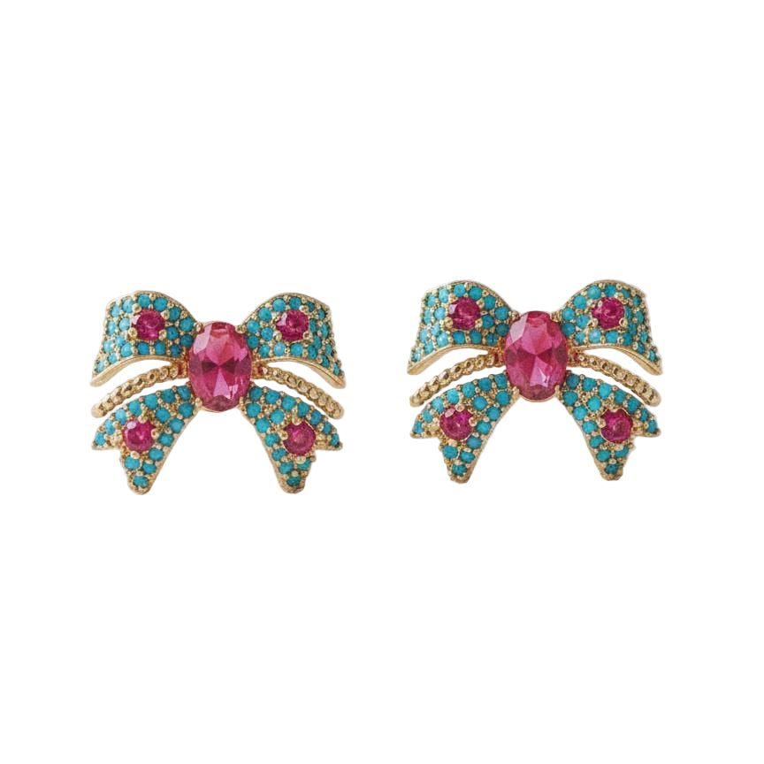 Blythe-Colorful Zircon and Bow Dangle Earrings