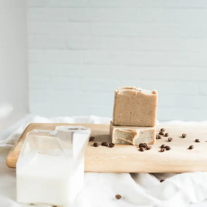Wake up your skin with our Goat Milk Coffee Natural Soap! Crafted with nourishing tallow, creamy mango butter, and moisturizing oils like avocado, jojoba, castor, coconut, and olive, this soap also features soothing goat milk and invigorating fresh brewed coffee and coffee grounds for a gentle exfoliating buzz. It's your morning pick-me-up in bar form, making every shower a fun and fresh start!