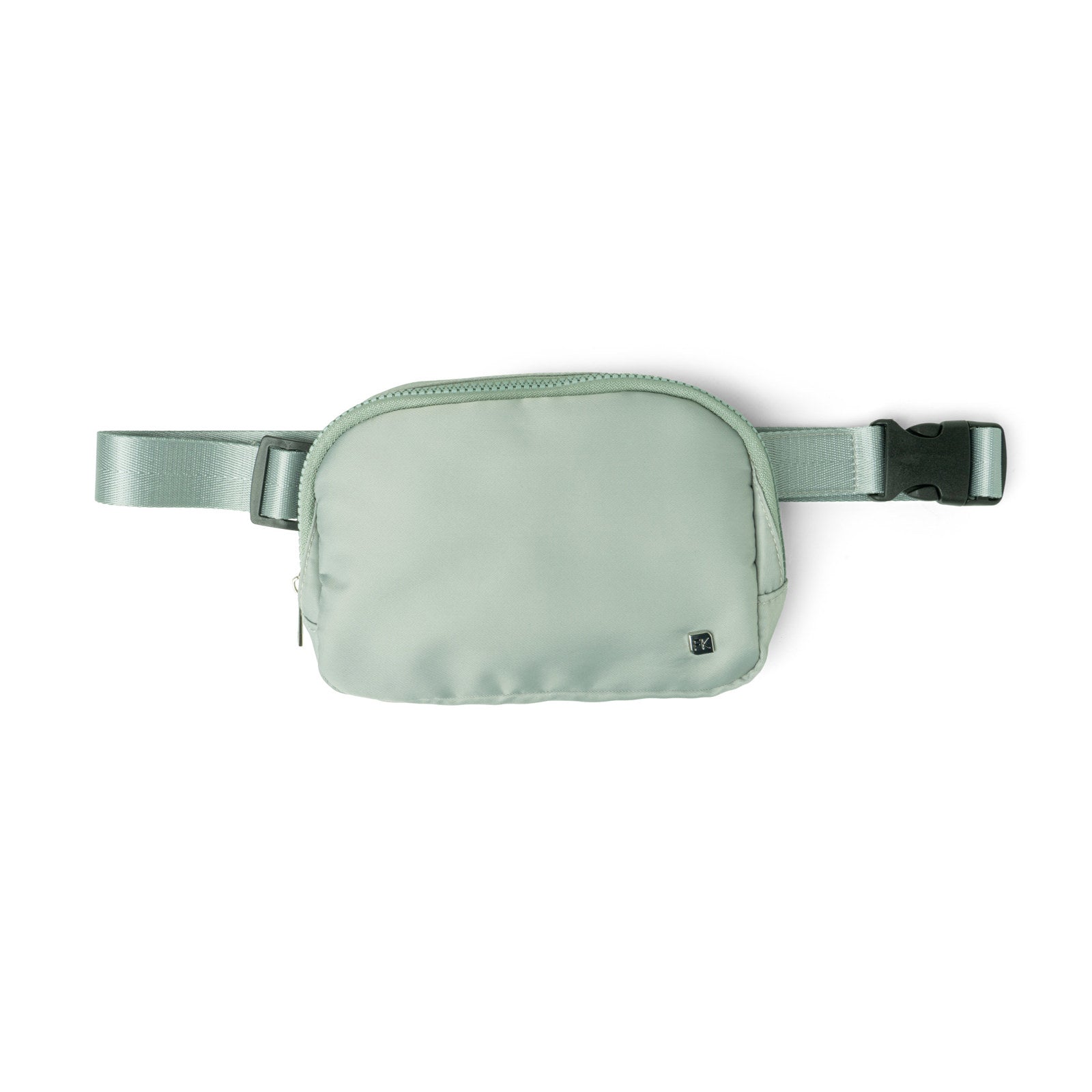 Get ready to fall in love with the FitKicks Airlight Belt Bag in the prettiest greenish/blue! This cult classic bag is ultra lightweight and perfect for workouts, travel, and everyday wear. With an easy-to-clean fabric and a spacious zippered compartment, you'll have enough space for all your essentials. Plus, stay organized with 3 interior mesh slip pockets and a back zippered pocket. The adjustable woven waistband (44" fully extended) and easy-clip buckle make it perfect for any adventure. It's like a lululemon belt bag, but better!