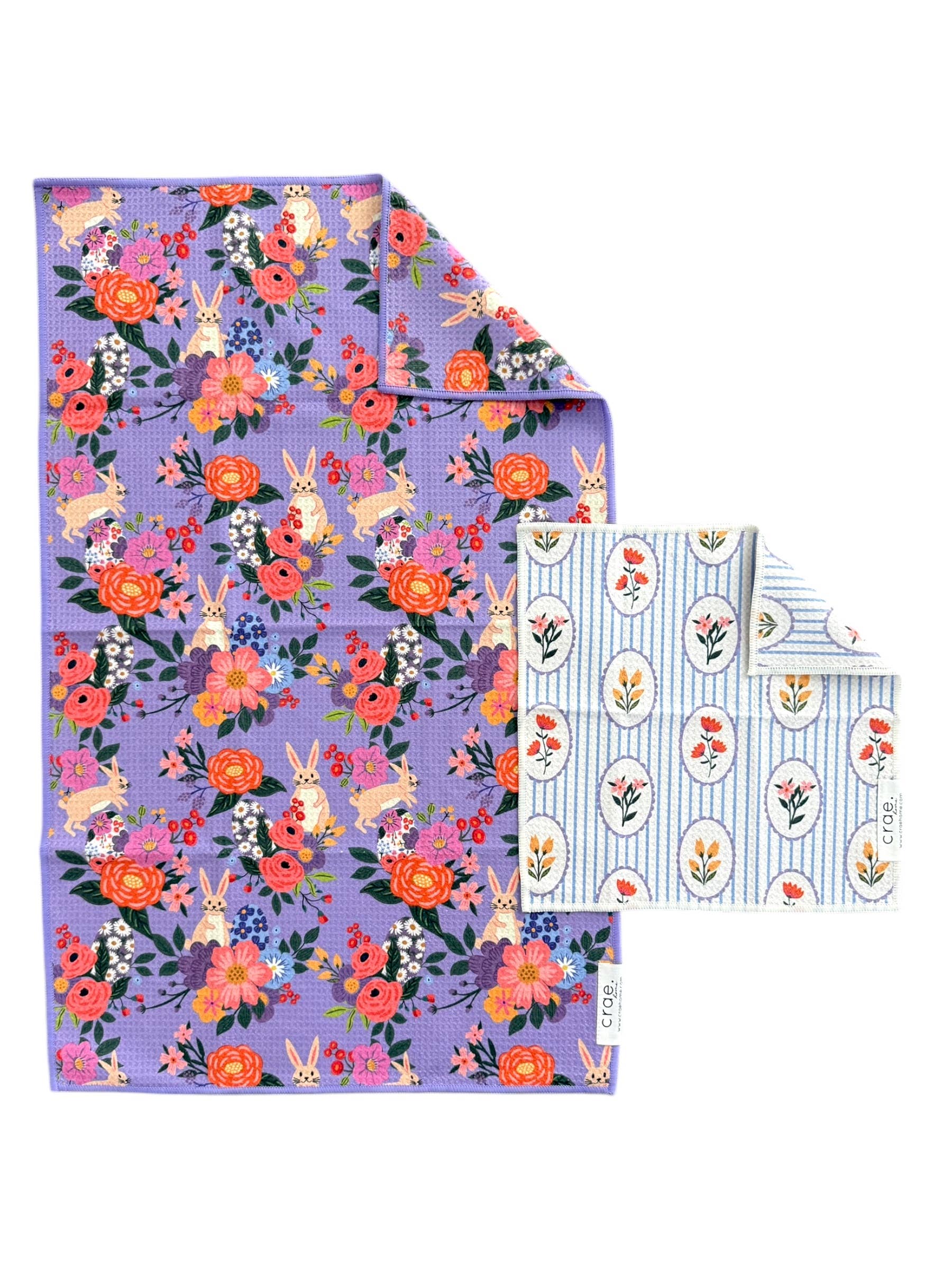 Celebrate spring with this charming double-sided hand towel and washcloth set, featuring playful bunny and floral designs. Each set arrives beautifully packaged and ready to gift, making it perfect for Easter baskets, housewarming presents, or seasonal giveaways. The coordinated pair combines everyday practicality with thoughtful presentation—ideal for friends, family, or as a delightful addition to your home. Soft, absorbent, and designed to brighten any bathroom or kitchen space.