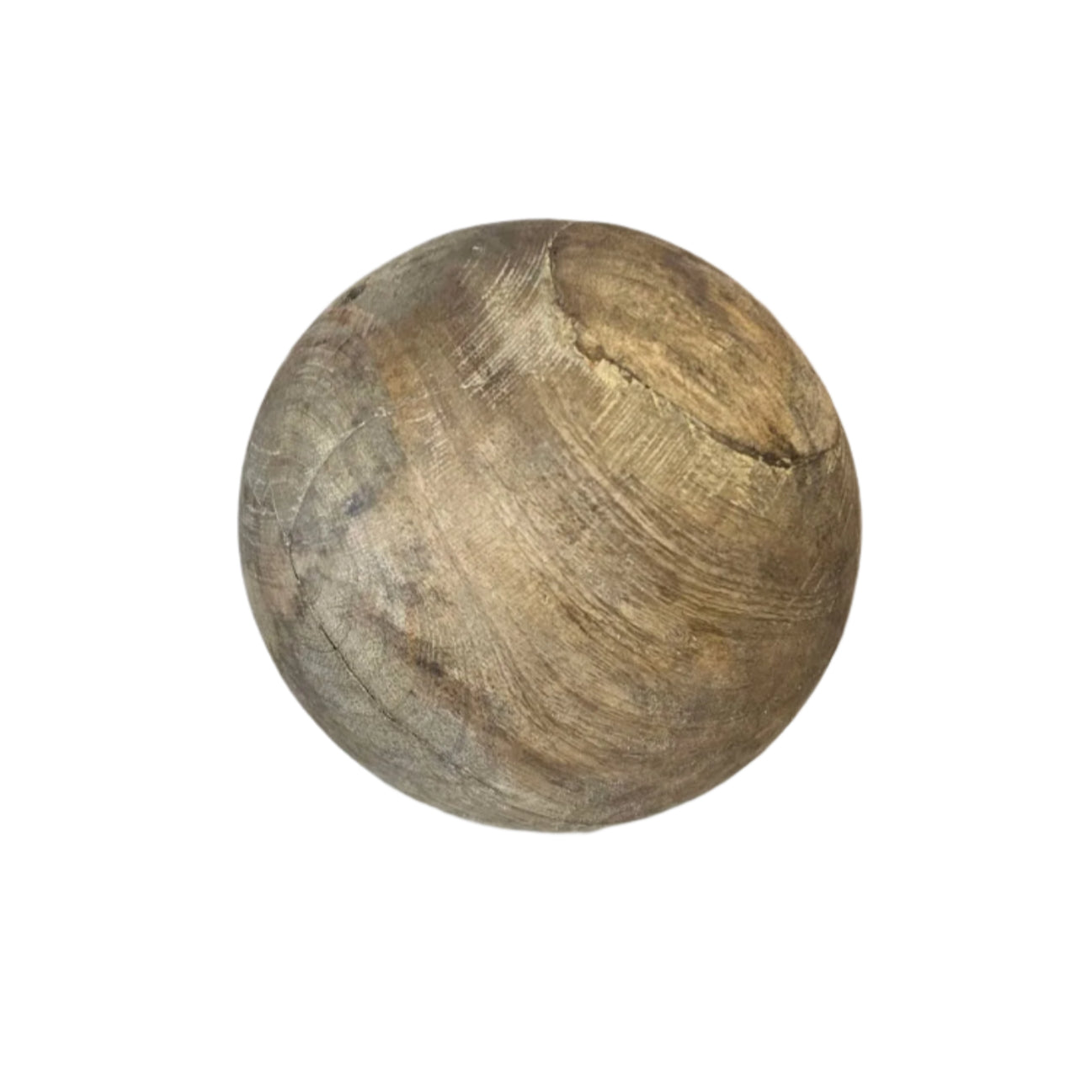 Add some natural charm to your home with Found Objects Wooden Balls. Made from real wood, these funky architectural salvage decor pieces can be used as bowl fillers or shelf decor. Each ball has a diameter of about 6 inches, making them the perfect addition to any space.