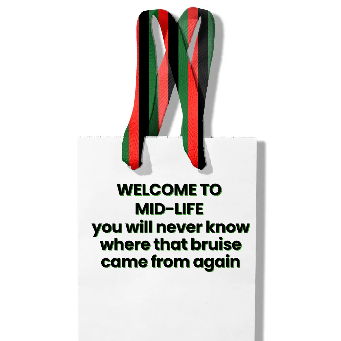 Funny birthday gift bag: When the gift bag IS the card. These bold birthday bags say what everyone’s thinking (but funnier). Pairs with our bestselling midlife towels + greeting cards. Perfect for 40, 50, and all the milestones in between. Colorful + fun-perfect for stationary, gift wrapping, and birthday gift sections Made in the USA with exclusive stripe ribbon handles (imported) Size: 8x10x4
