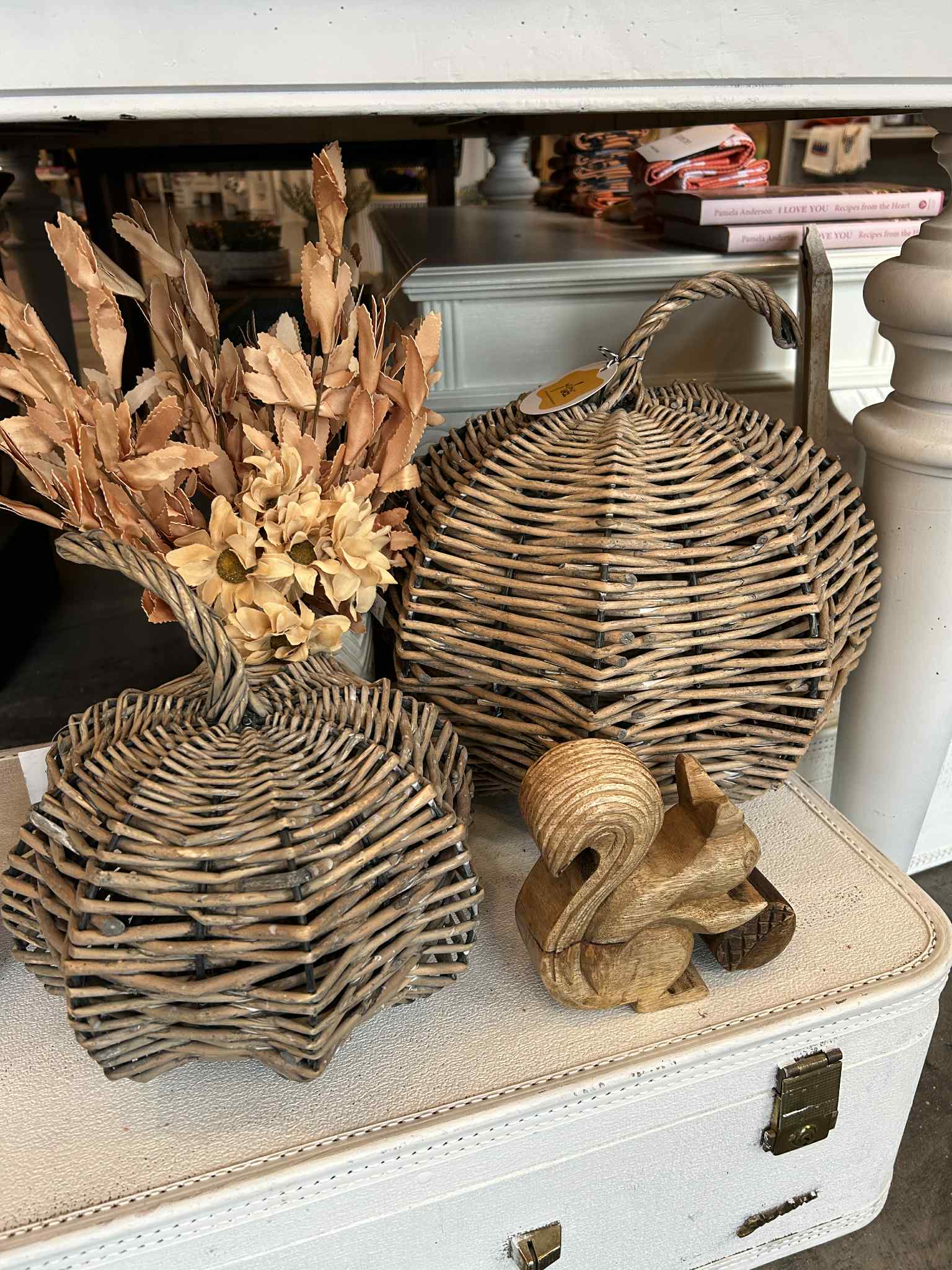 Welcome fall with this charming small gray rattan pumpkin, perfect for porch or floor décor. Its playful woven design adds cozy texture and seasonal spirit to your entryway or living space, bringing a lighthearted touch to your autumn decorations.