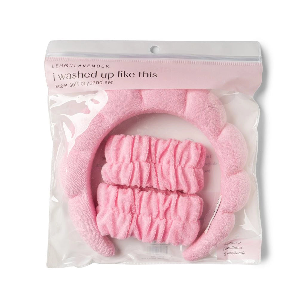 Super soft terry cloth headband and wristbands are designed to keep your hair back and water from running down your arms as you wash your face.