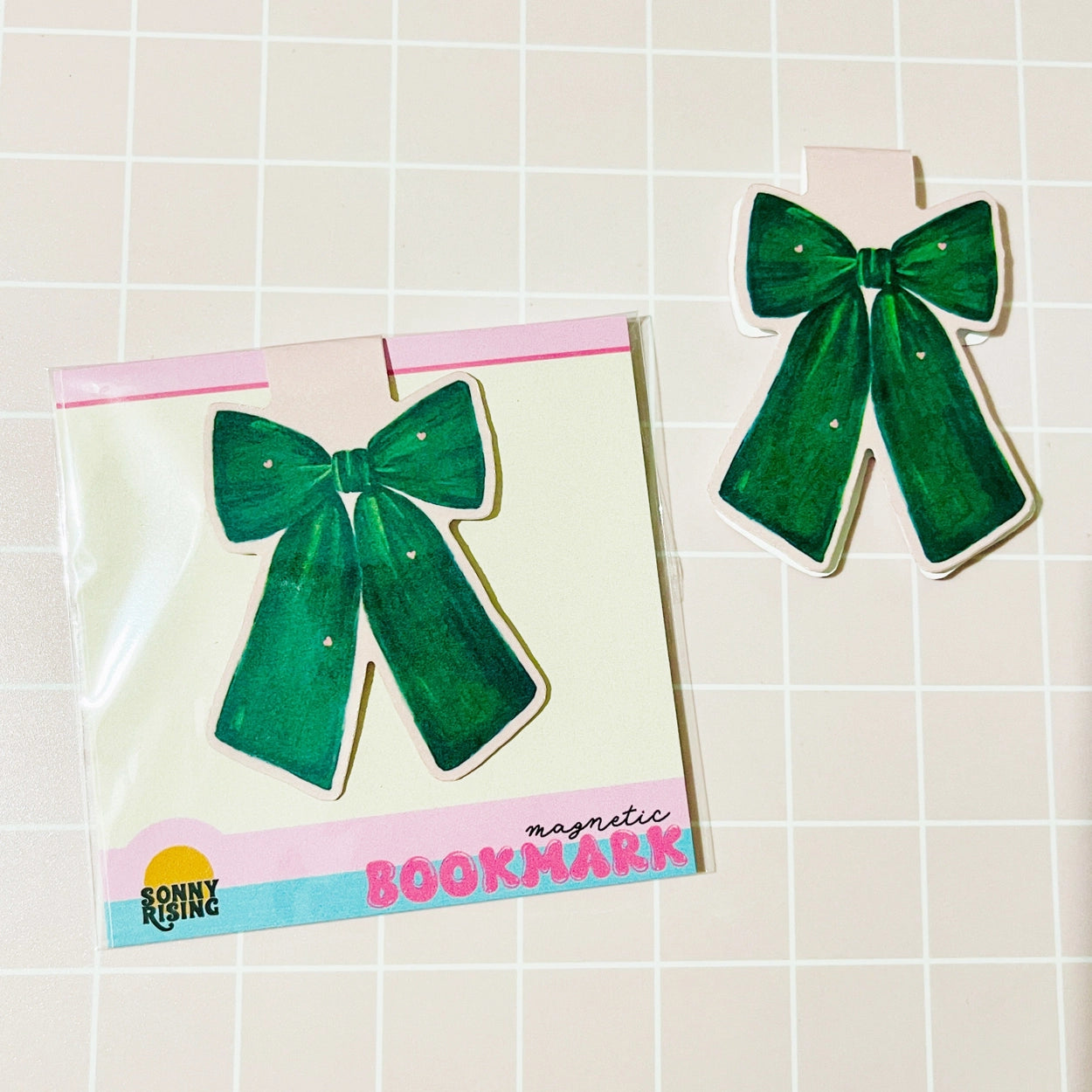 Magnetic Bookmark-Green Bow with Pink Hearts