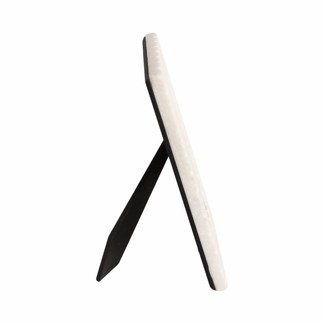 Display your favorite 4x6 photos in style with this sleek marble frame that brings serious sophistication to any room. Built from genuine white marble with a contemporary ridged design, it's the kind of piece that makes people ask, "Where'd you get that?" Set it on your nightstand, desk, or shelf with the included easel stand, or hang it on the wall using the built-in hooks. Solid stone construction means it'll look stunning for years to come, adding that perfect touch of modern elegance to your space.