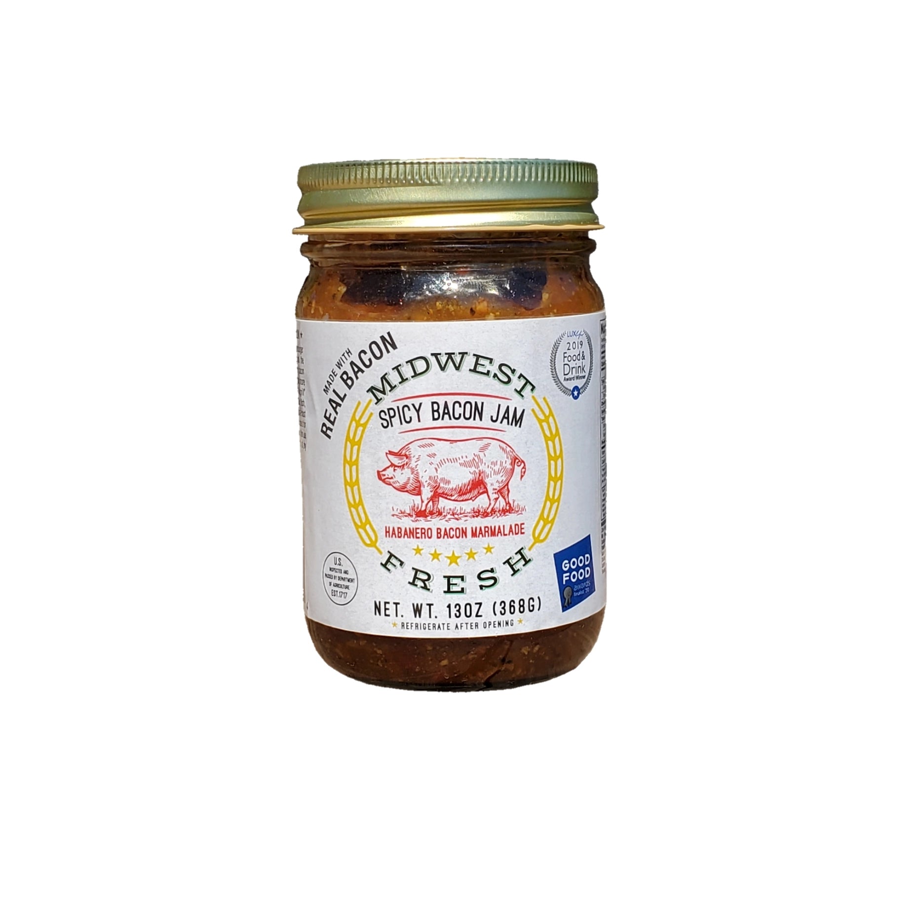 Discover the deliciousness of Midwest Fresh Spicy Bacon Jam - the award-winning best burger sauce known throughout Indiana and the Midwest! Its gooey bacon-onion marmalade/relish is a delicious condiment for any grilled food, and can be transformed into a tasty topping or dip. Spice up your Bloody Mary or Charcuterie board and make your next gathering or grill party the hit of the summer! Want to make the best dang smash burger ever? Top if off with Midwest Fresh Spicy Bacon Jam!