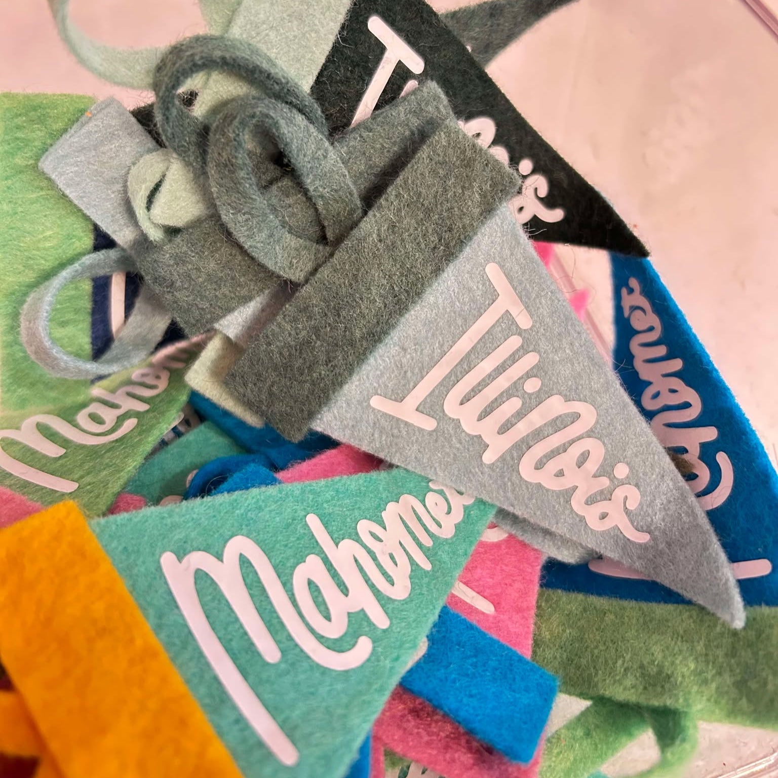 Introducing our Mini Pennant Illinois-Winter Blues! Each mini felt pennant comes in a unique shade in the 'winter blues' color palette. Use it as a tag for graduation gifts or add a touch of personality to your locker or desk. Perfect for those feeling a little down, but not out!