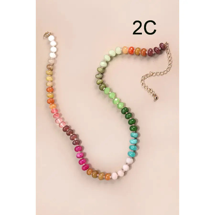 Natural Agate Glass Semi-Precious Bead Necklace, a stunning accessory that features a vibrant mix of glass and semi-precious beads. A stunning piece that combines elegance with vibrant charm. This necklace features a mix of hand-picked glass and semi-precious beads, including beautiful natural agate, arranged to create a captivating and colorful motif. Product Details: length: 16" ext: 3" Ball Chain Ext clasp: Lobster Claw metal finish: Gold Plated product: Lead & Nickel Compliant anti-tarnish: Double E-coating
