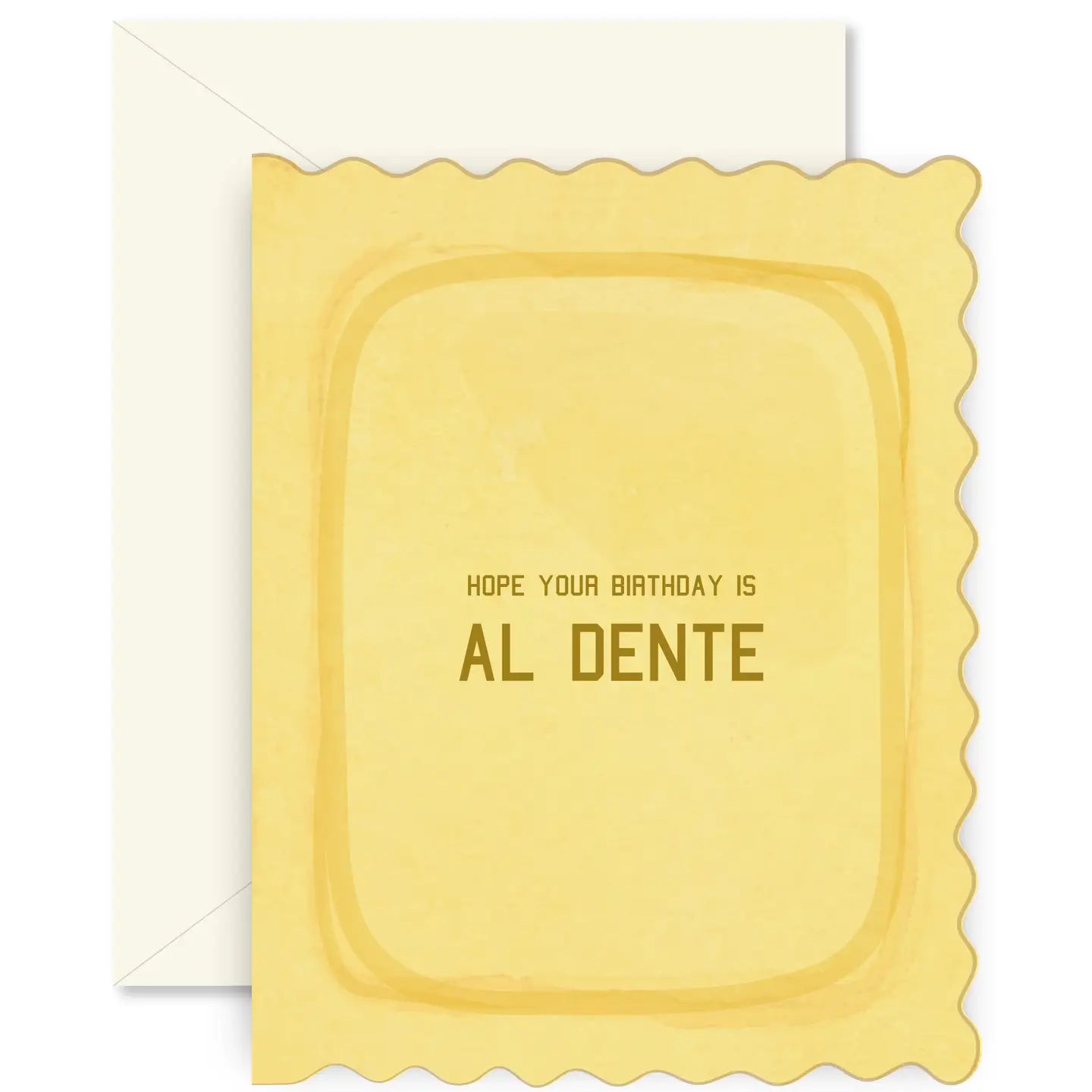 Celebrate your pasta-loving friend’s special day with this charming Pasta Al Dente Greeting Card. Measuring 4.25 x 5.5 inches when folded, it features hand-drawn scalloped edges and a playful pasta joke on the back to bring a smile. The blank interior lets you add your own heartfelt message. Each card is individually packaged in a protective plastic sleeve, perfect for gifting with a touch of fun.