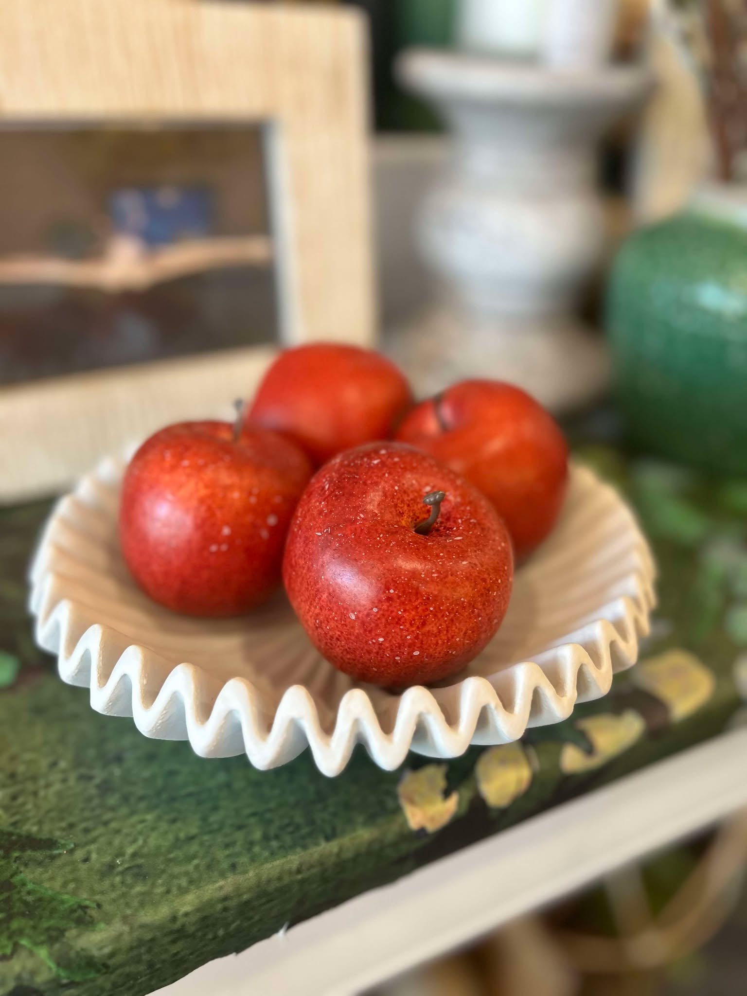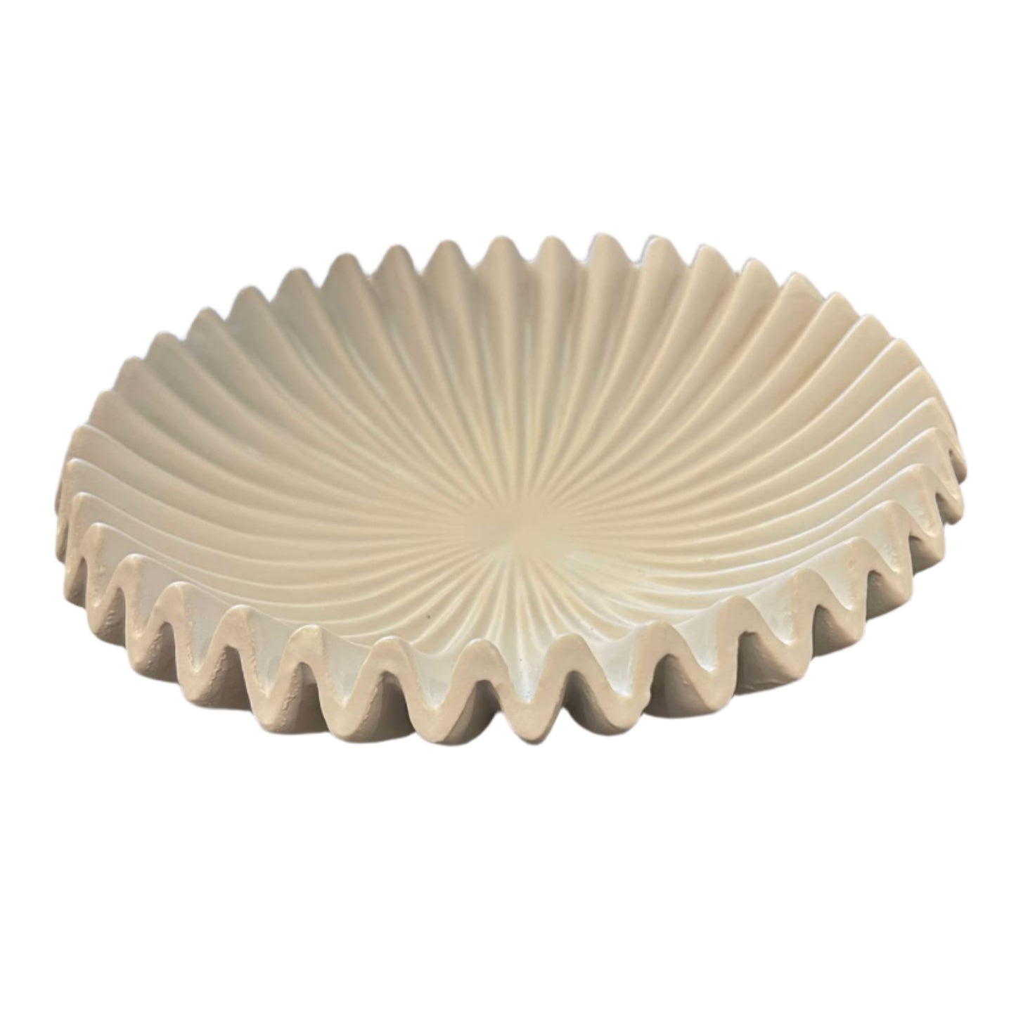 This beautiful 'ruffled' ceramic bowl is a piece of art on it's own but beautiful when holding fruit, a jarred candle, pocket change, etc.