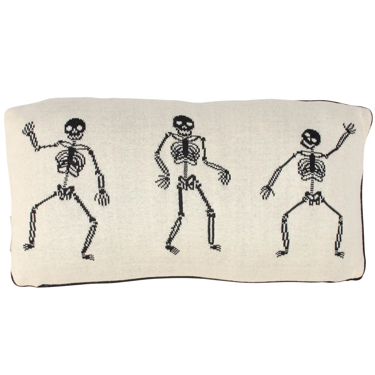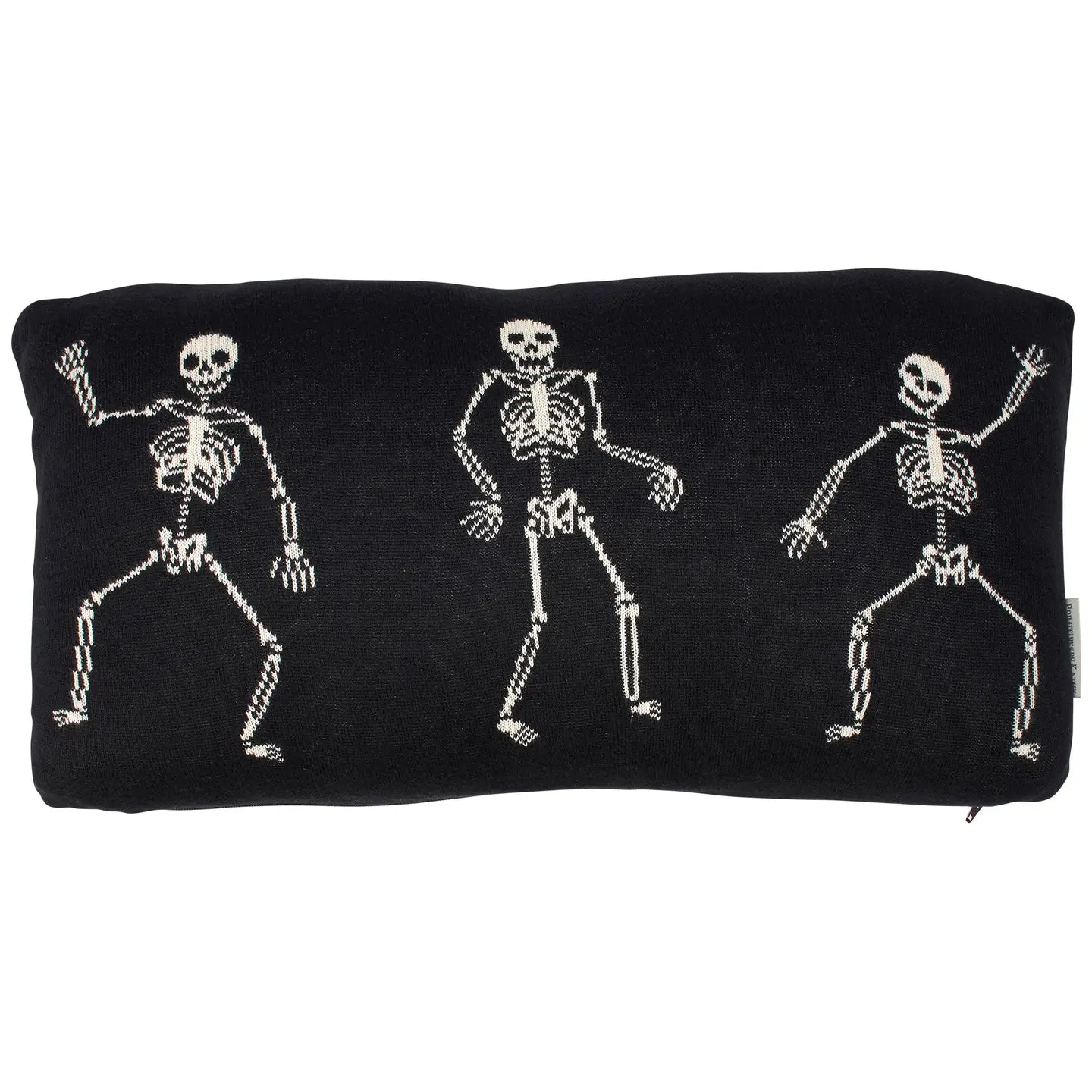 Add a spooky touch to your space with our Skeletons Pillow from the Halloween Collection. This cozy knit cotton pillow features playful skeleton designs on both sides, alternating between black and cream for a fun seasonal vibe. The zipper makes it easy to remove the machine-washable cover, while the soft polyester filling ensures comfort. Vacuum-sealed for safe shipping and storage, this pillow is the perfect festive accent to brighten up any room with Halloween spirit.