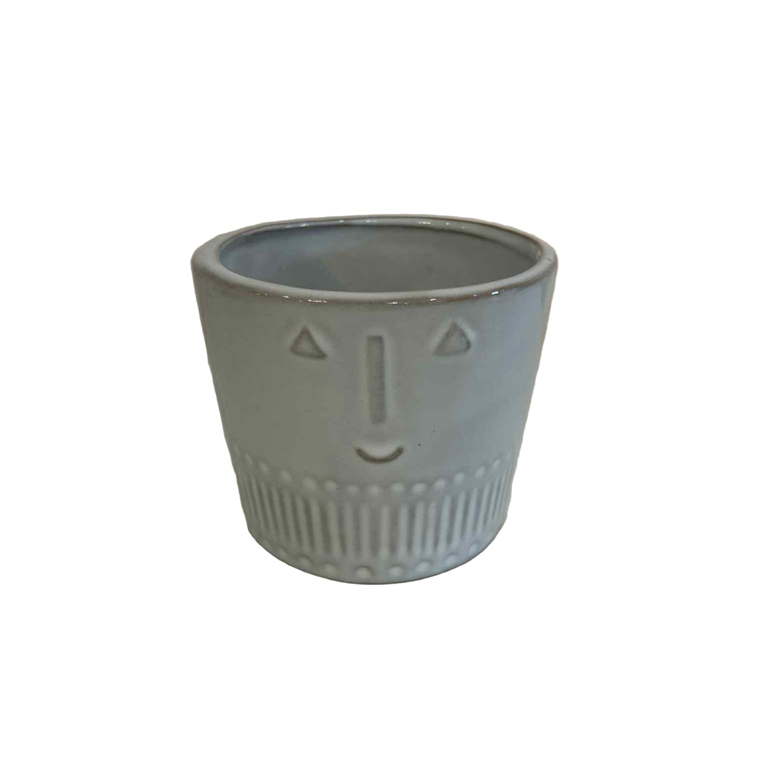 Bring a touch of festive charm to your space with this small off-white ceramic planter featuring a playful jack-o'-lantern inspired face. Perfect for tiny plants or succulents, it adds a whimsical, seasonal vibe wherever you place it. Its compact size fits easily on desks, shelves, or windowsills, making it a delightful accent for fall or Halloween décor.