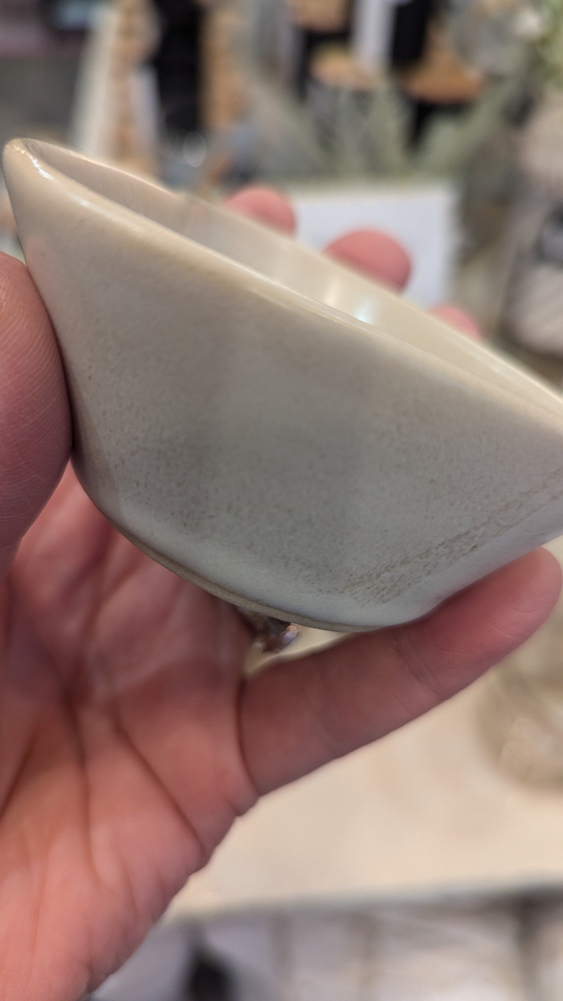 Ceramic,glazed. Creamy neutral shades to fit in with any decor.